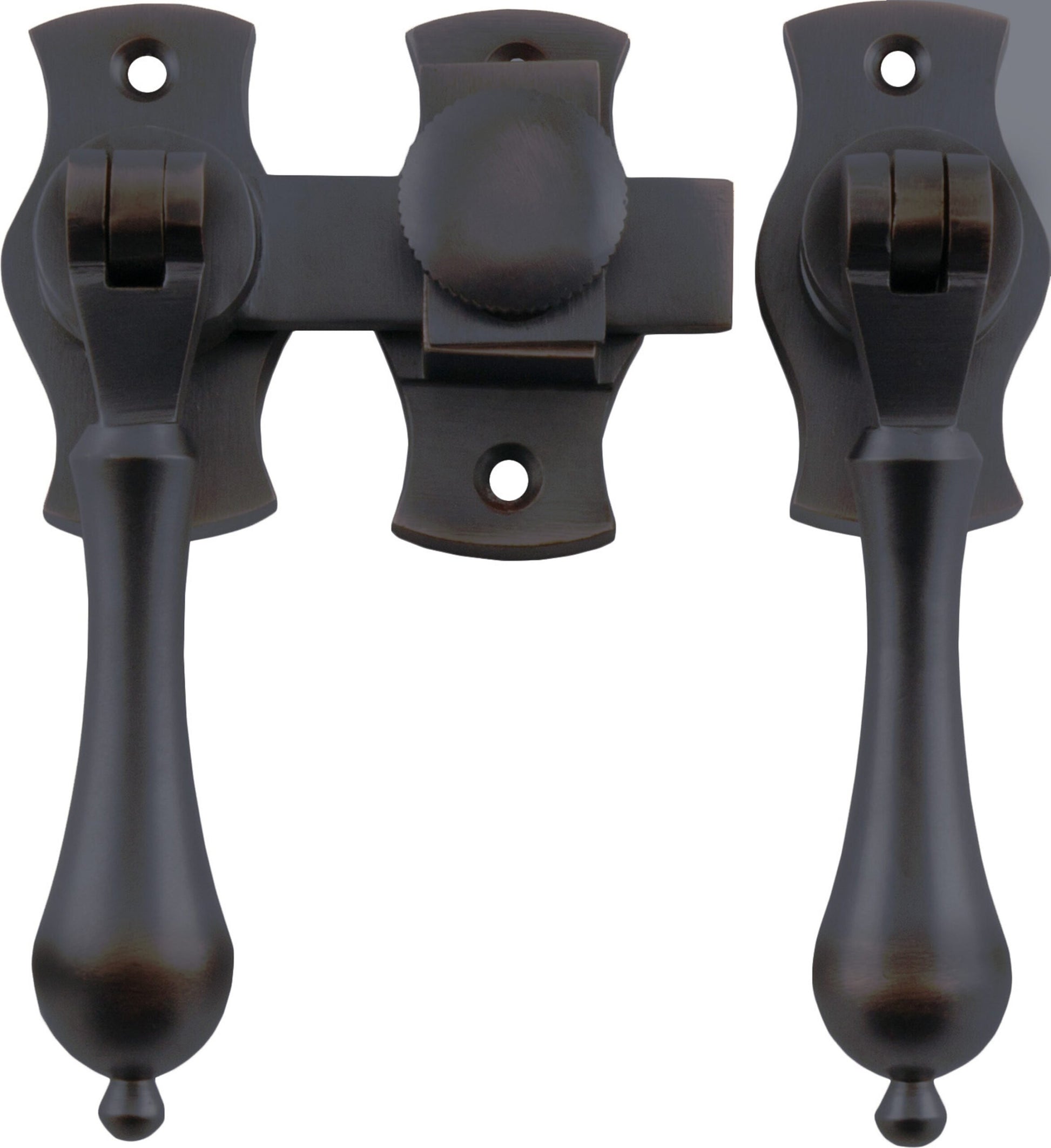 Teardrop French door fasteners with screw down catch.